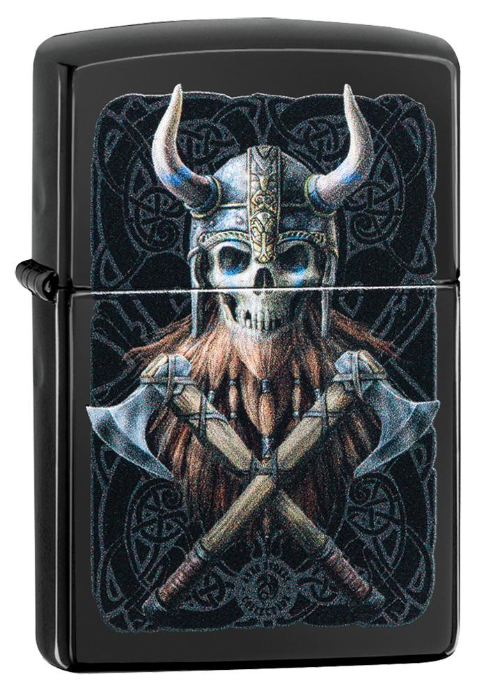 Anne Stokes does it again with this hardened Skeleton Viking warrior design. At the center of this High Polish Black lighter is a fierce Viking skull, staring outwardly above two crossed battle-axes with a thick brown beard braided for battle. This piece will have you feeling like a Nordic god! Comes packaged in a gift box. For optimal performance, fill with Zippo lighter fuel.