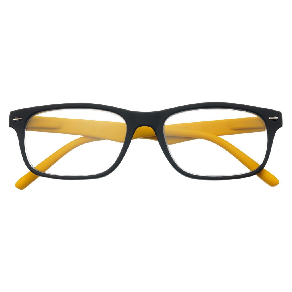 The timeless design of classic black square frames is matched with bold temple arms in green, orange, or yellow. Head to your next event with confidence in these quirky readers. These readers come equipped with flex system temples: flexible arms that bend forward as well as backward in order to provide a comfortable fit for all head sizes and face shapes.