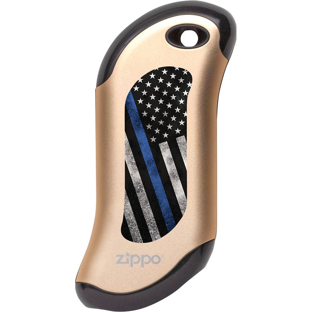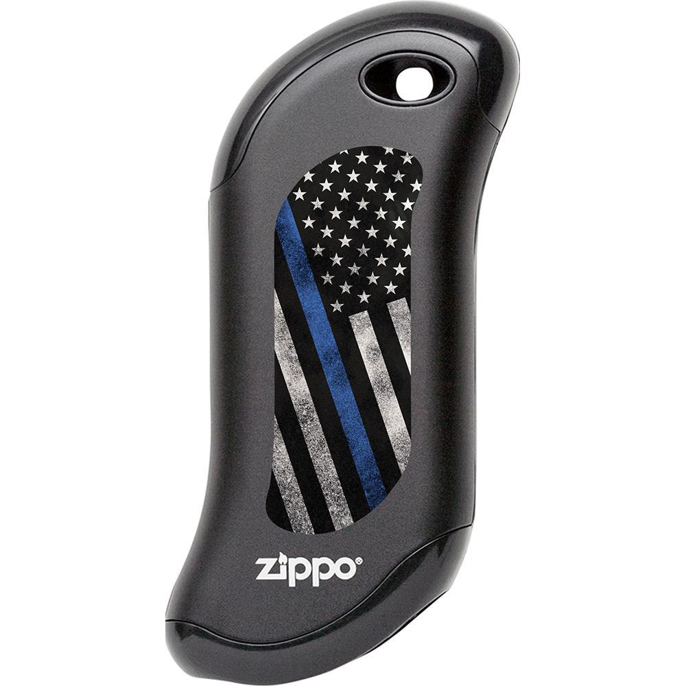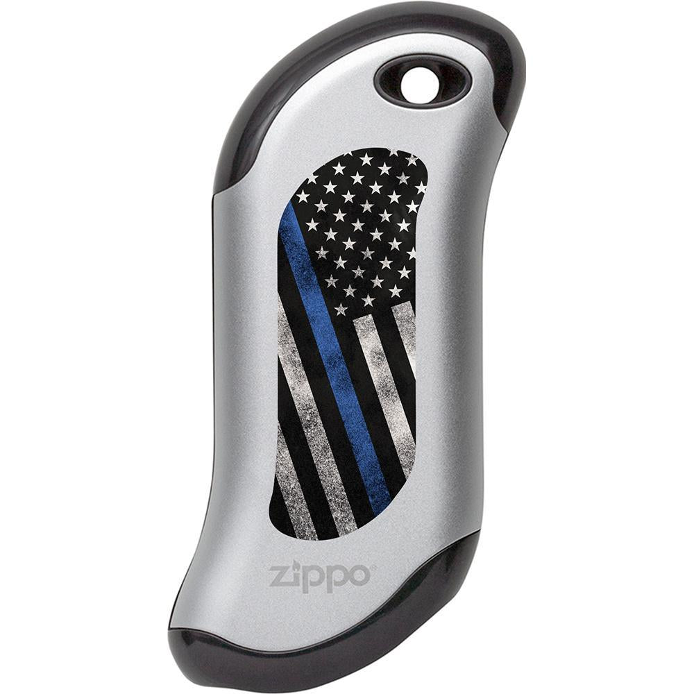 This Thin Blue Line hand warmer design recognizes and honors those who serve as our Nation's Law Enforcement. Salute your loved ones with this HeatBank® 9s Rechargeable Hand Warmer. The design is created using the color imaging process and is available in silver, champagne and black models. The HeatBank® rechargeable hand warmer keeps you warm from the office to the woods. The convenient power bank feature also recharges your USB compatible device, so you can stay connected while enjoying the outdoors.