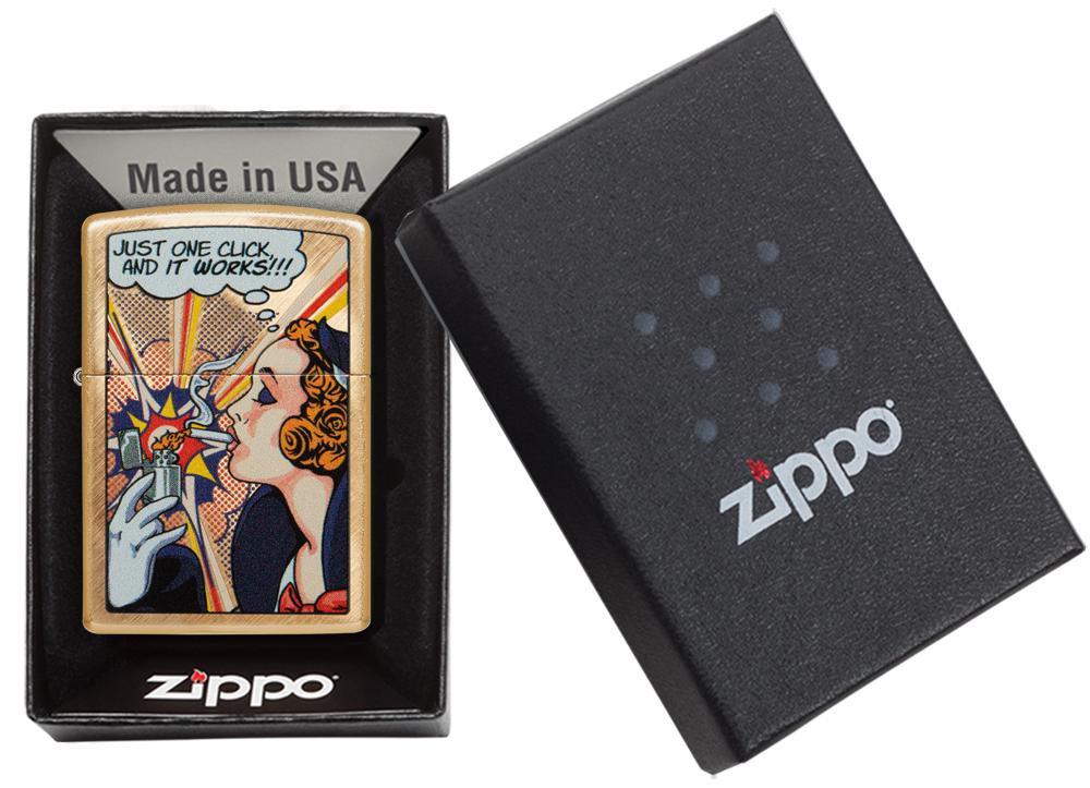 - Genuine Zippo windproof lighter with distinctive Zippo "click"