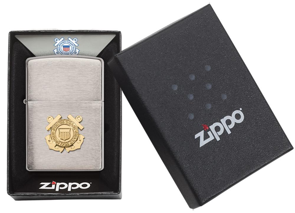 This lighter features the emblem of the United States Coast Guard on a classic Brushed Chrome lighter. Comes packaged in a gift box. For optimal performance, fill with Zippo premium lighter fuel.