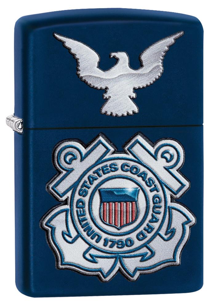 Salute the United States Coast Guard with this navy matte windproof lighter. This lighter features the United States Coast Guard emblem and eagle. Comes packaged in a gift box. For optimal performance, fill with Zippo lighter fuel.