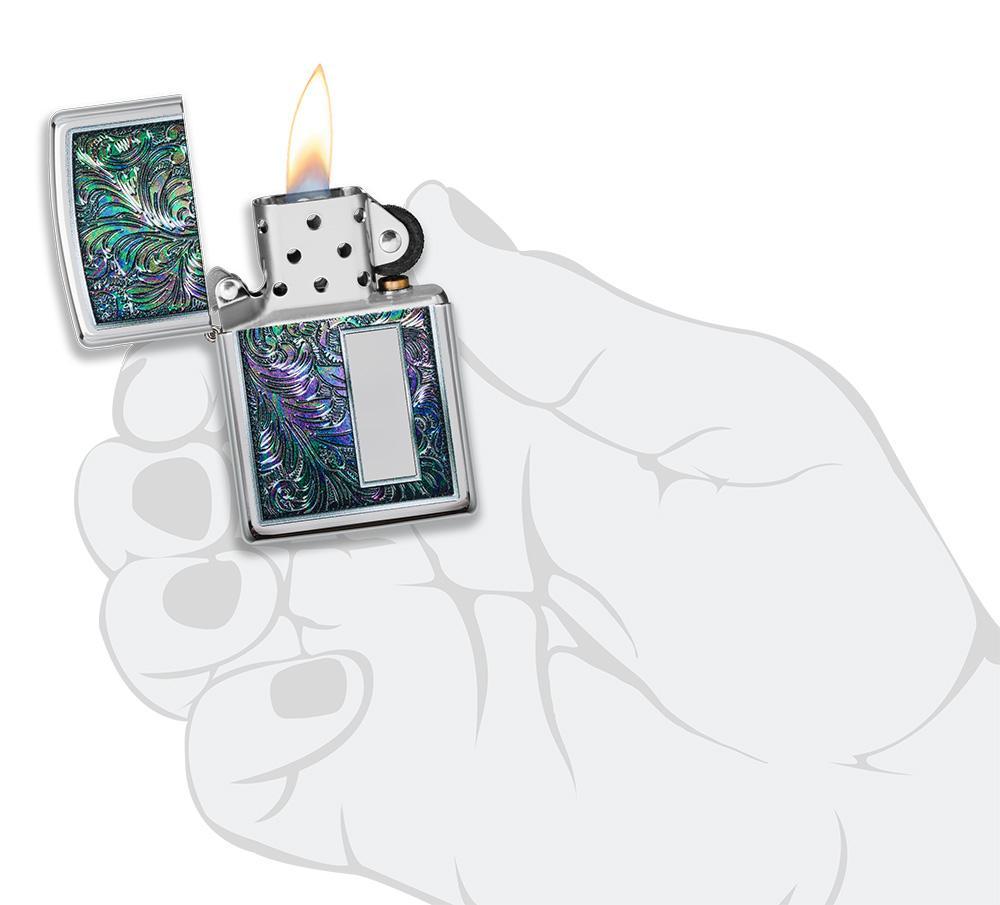 Introduced in 1974, the timeless front floral pattern of the Venetian continues to be the most globally appealing lighter design Zippo has ever released. This High Polish Chrome lighter is decorated on the front surface with a multi-colored filigree design. Comes packaged in a gift box. For optimal performance, fill with Zippo lighter fuel.