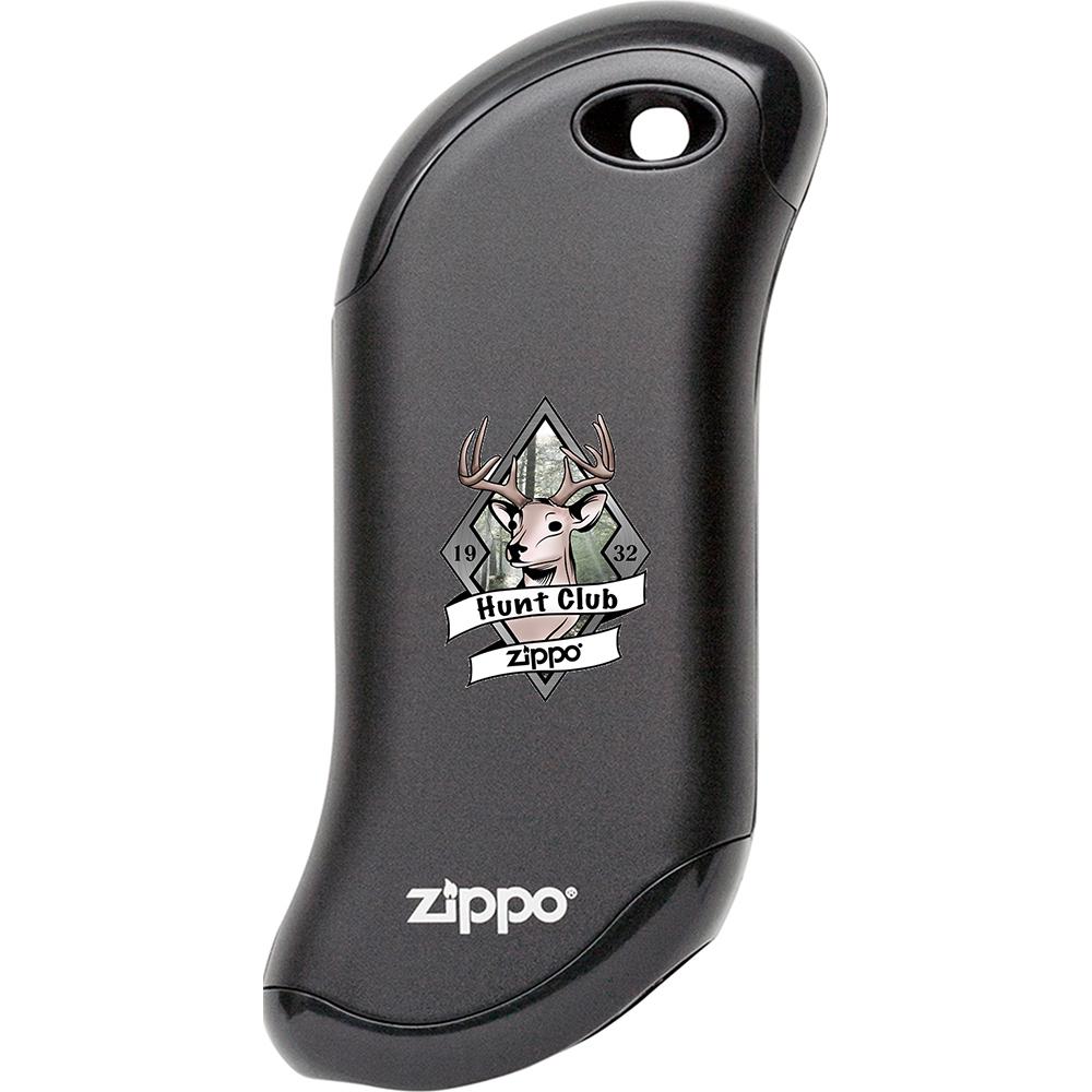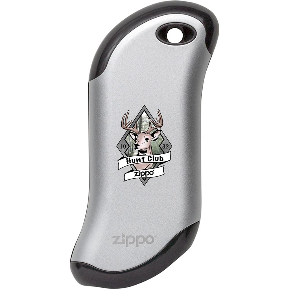Take your love for hunting outside of the woods with this Heatbank® 9s Rechargeable Hand Warmer. This design is perfect for all avid hunters. The phrase 'Hunt Club' and deer is color imaged onto this Heatbank®. Available on black, silver, and champagne models. The HeatBank® rechargeable hand warmer keeps you warm from the office to the woods. The convenient power bank feature also recharges your USB compatible device, so you can stay connected while enjoying the outdoors.
