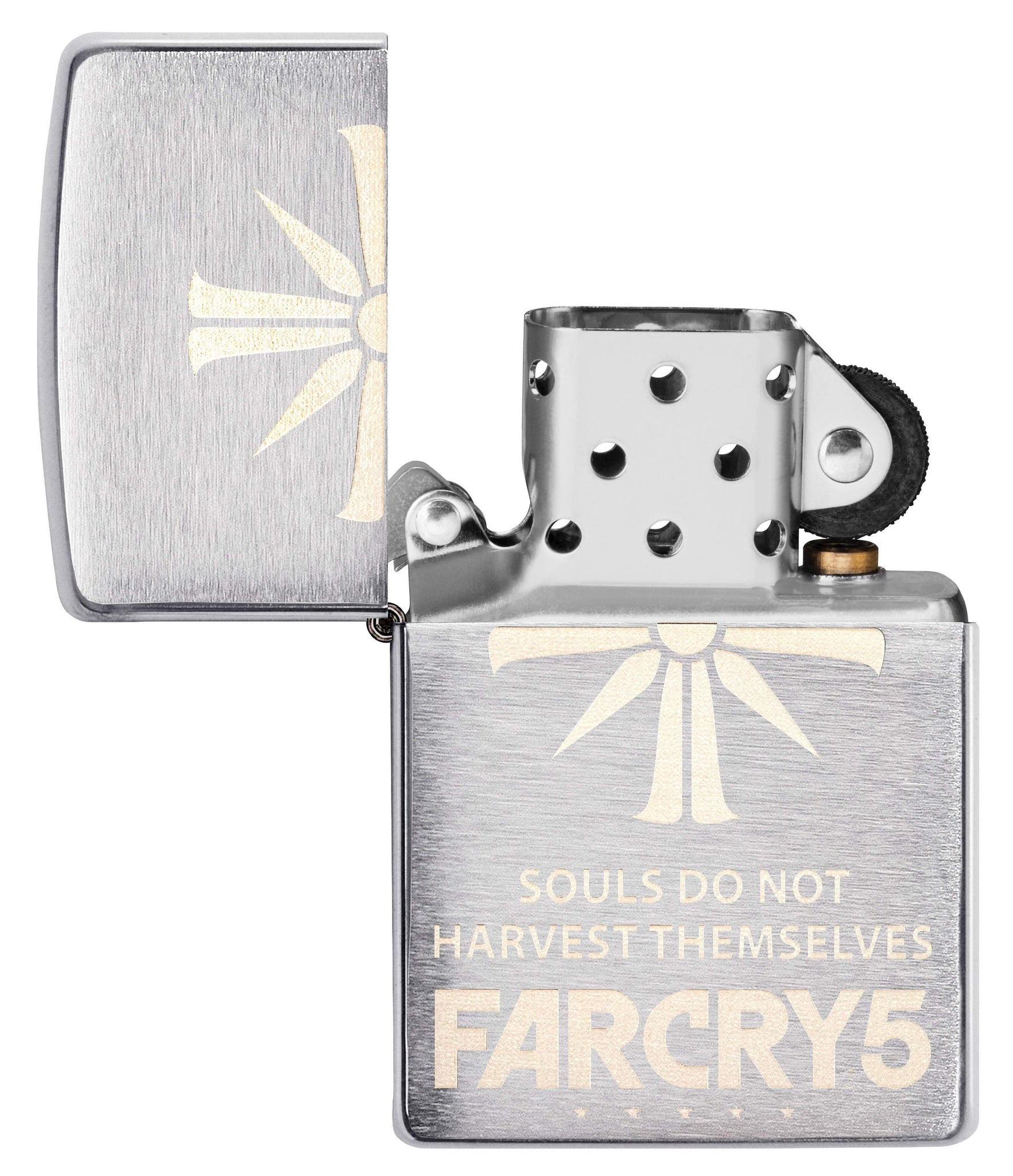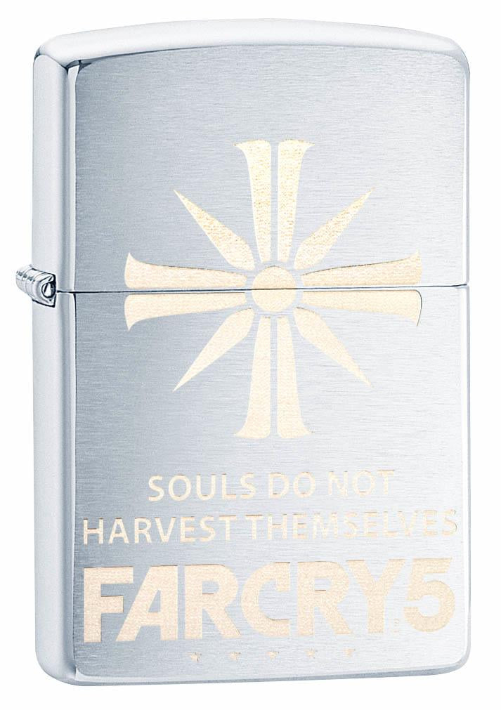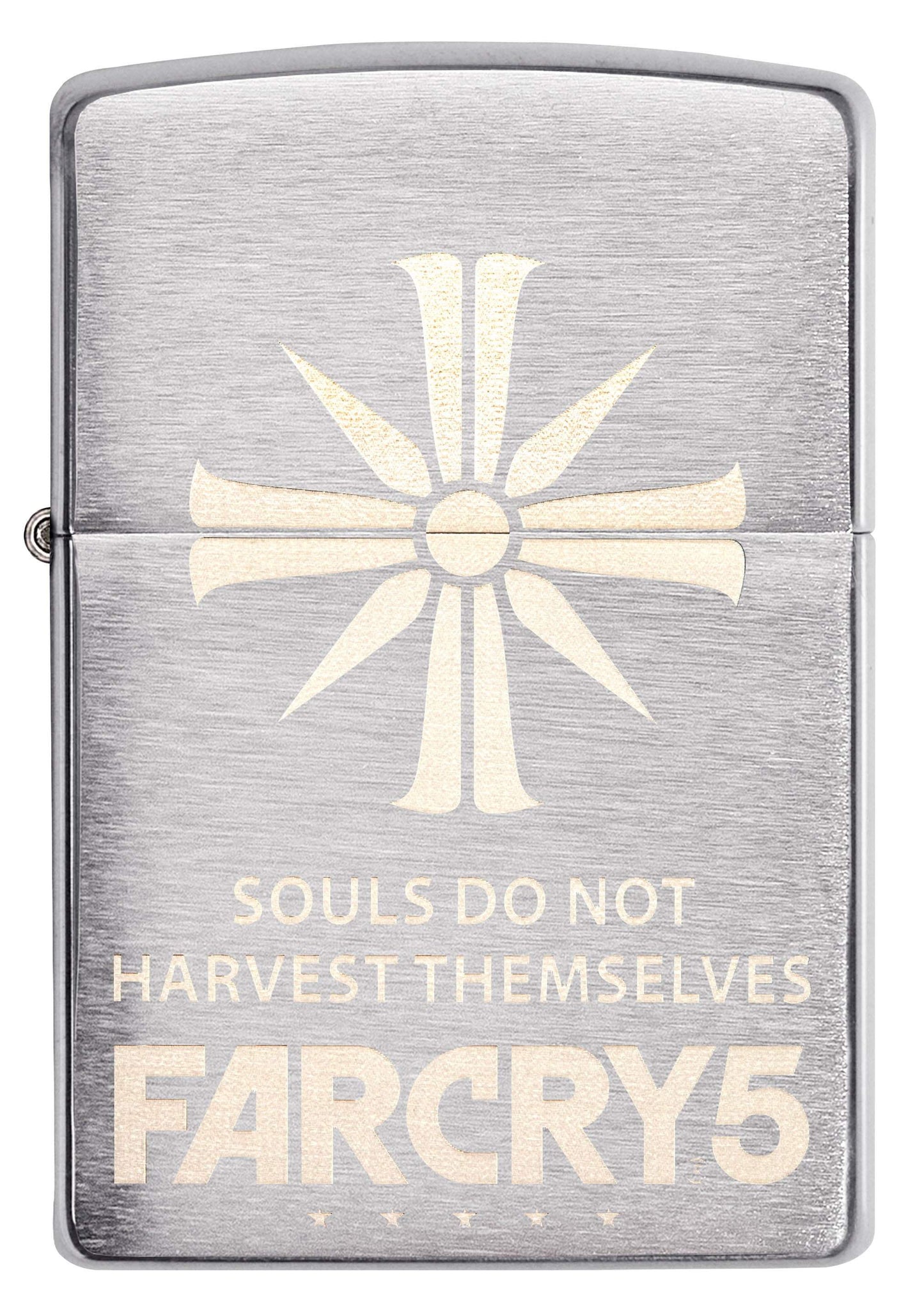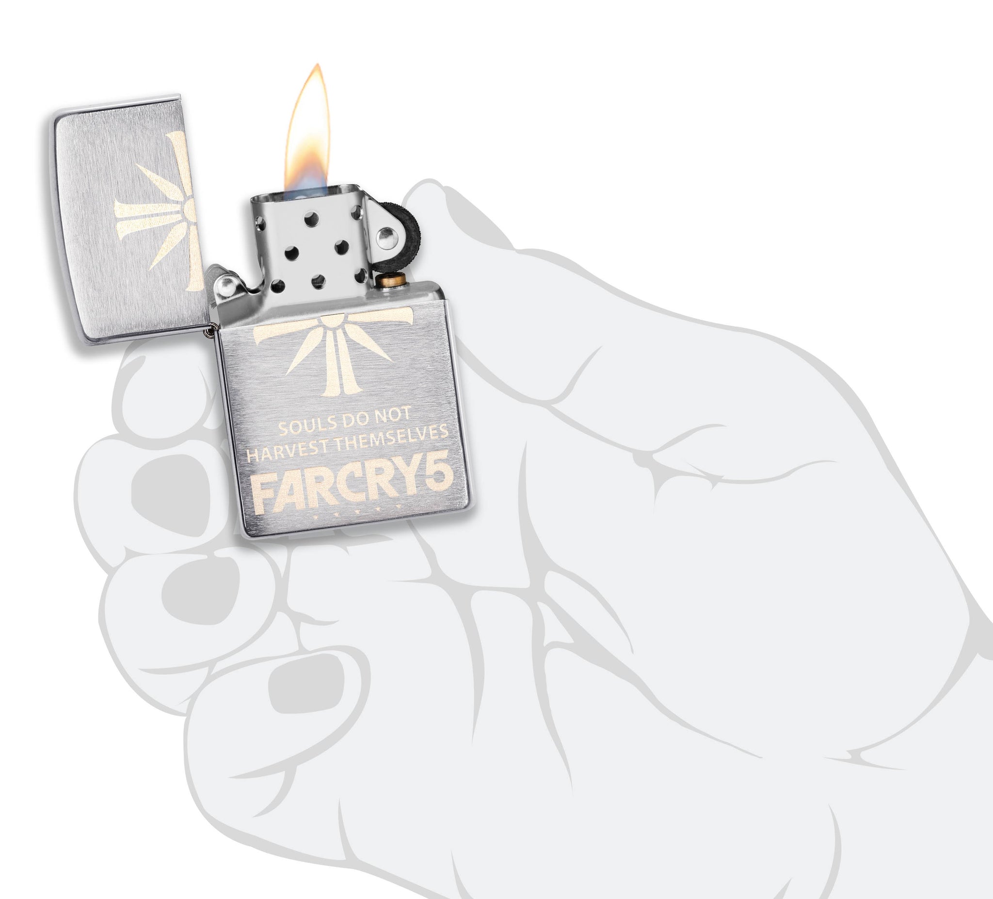 Trust. Prey. Obey. That is the code of the cultists of the Project at Eden's Gate, the doomsday cult that has overthrown Hope County in Far Cry® 5. In this design, the creed's logo and the saying "Souls do not harvest themselves," as well as the Far Cry® 5 logo is laser engraved on a Brushed Chrome lighter. Comes packaged in Zippo's premium box. For optimal performance, fill with Zippo lighter fuel.